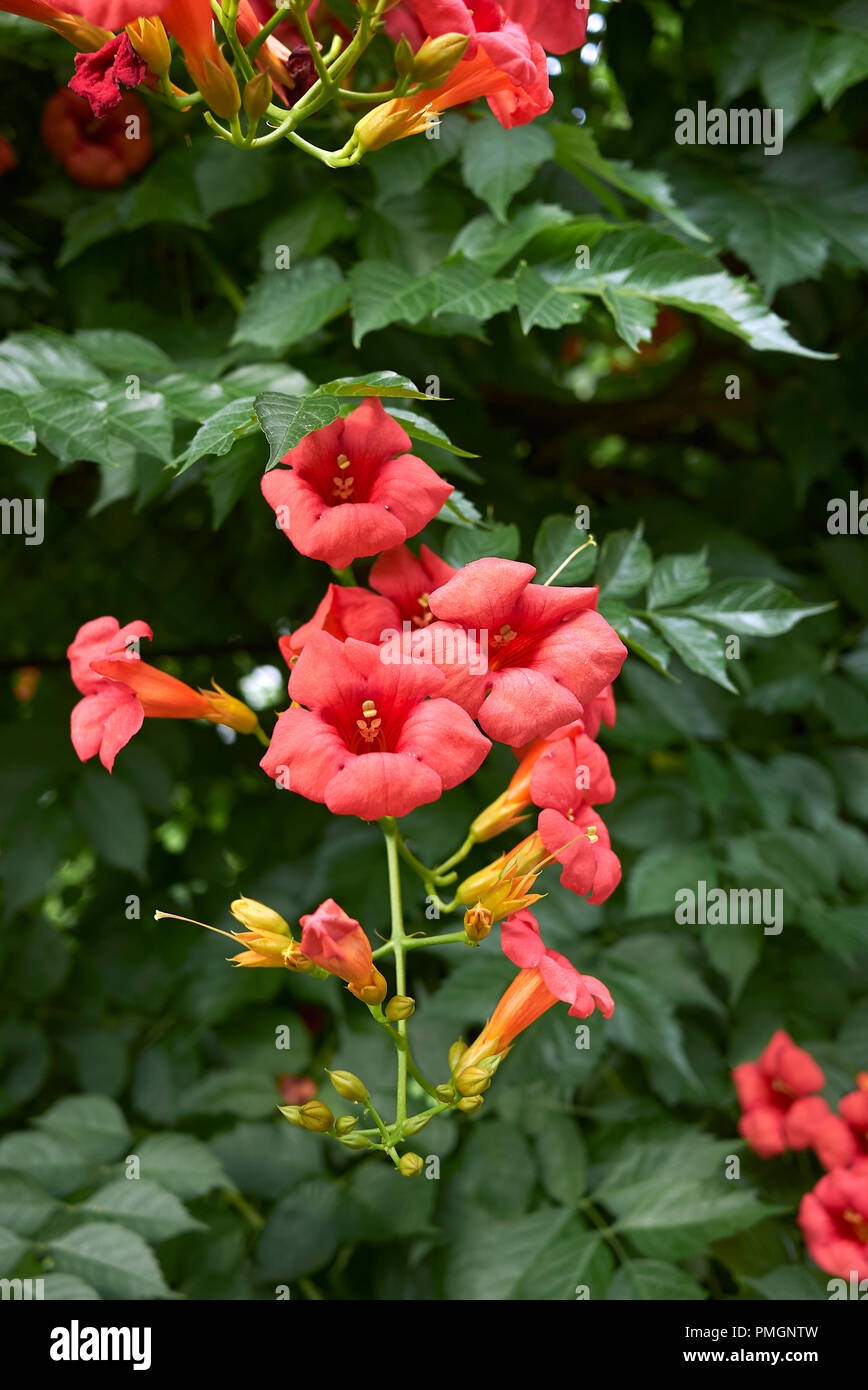 Trumpet vine (Campsis radicans Stock Photo Alamy Trumpet Vine (Campsis Radicans) Web trumpet vines, commonly referred to by their botanical name campsis, are deciduous woody climbers with. It is native to the southeastern united states but has. Web how to grow campsis. Web campsis radicans, also known as trumpet vine or trumpet creeper, is a deciduous climbing vine that is native to the southeastern united states. Find out how to grow,. Trumpet Vine (Campsis Radicans).
